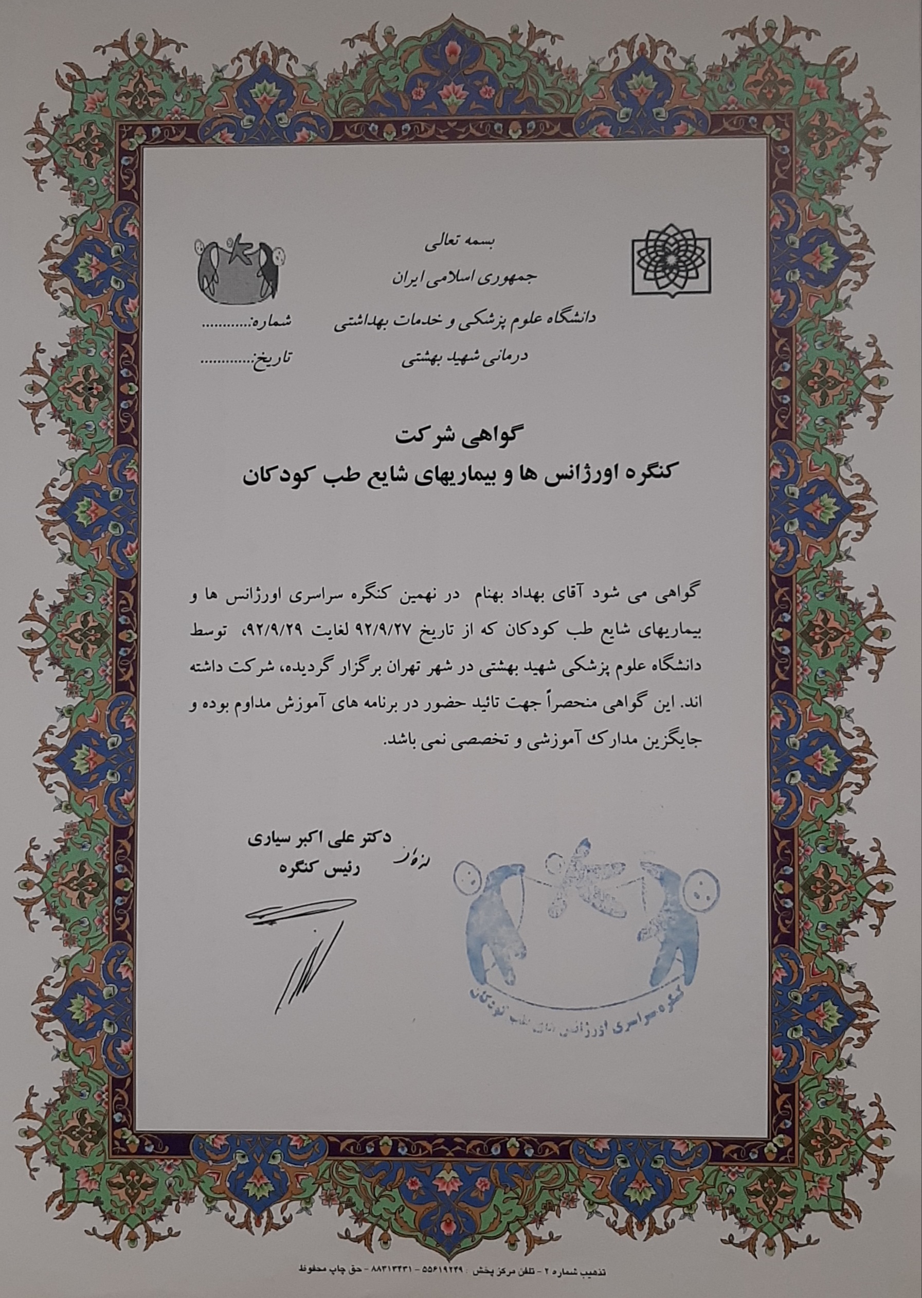 فارغ التحصیل پزشکی عمومی از دانشگاه علوم پزشکی شهید بهشتی (سال ۱۳۹۶)