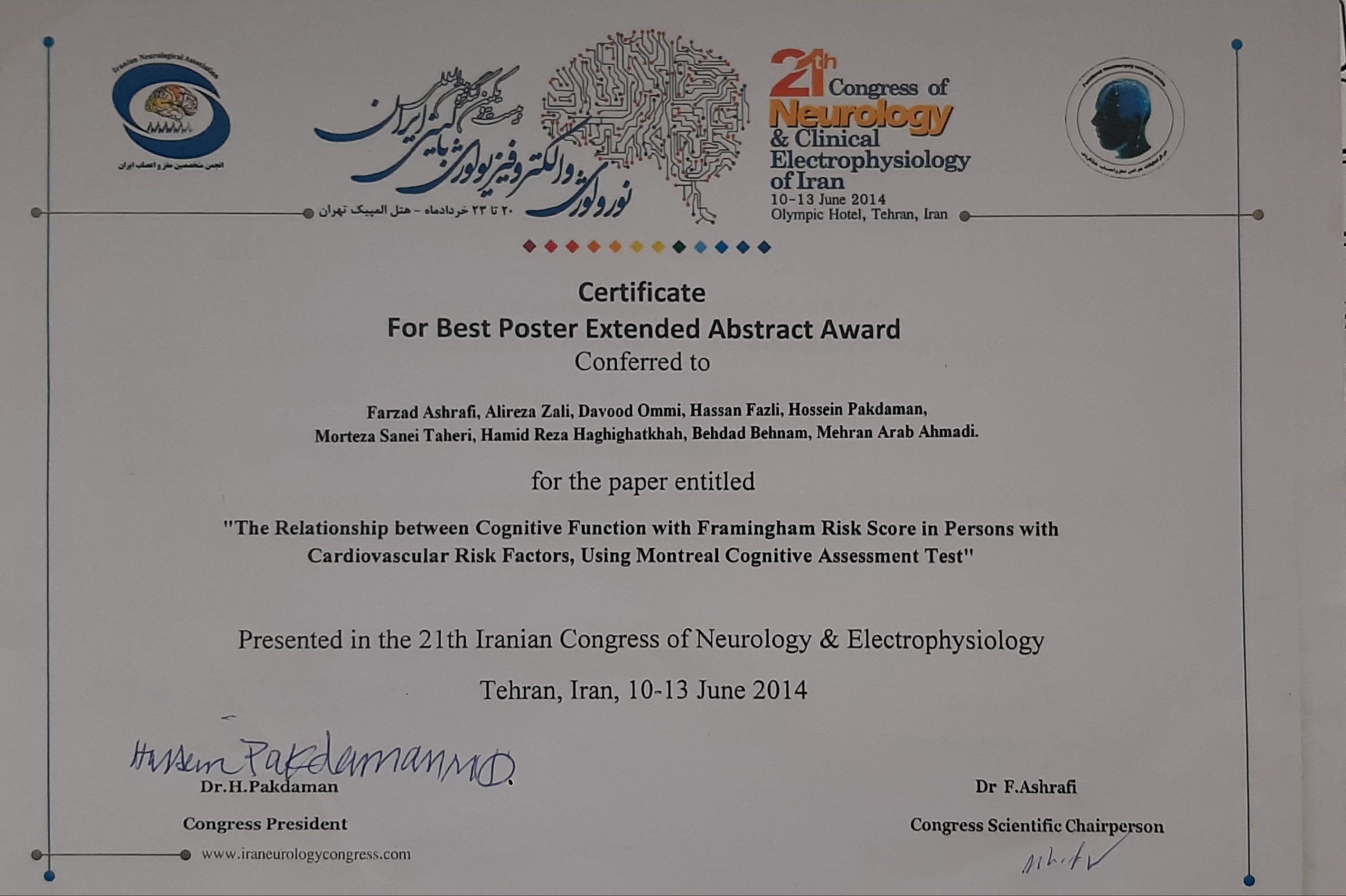 بیست و یکمین کنگره نورولوژی و الکتروفیزیولوژی ایران (سال ۱۳۹۳)