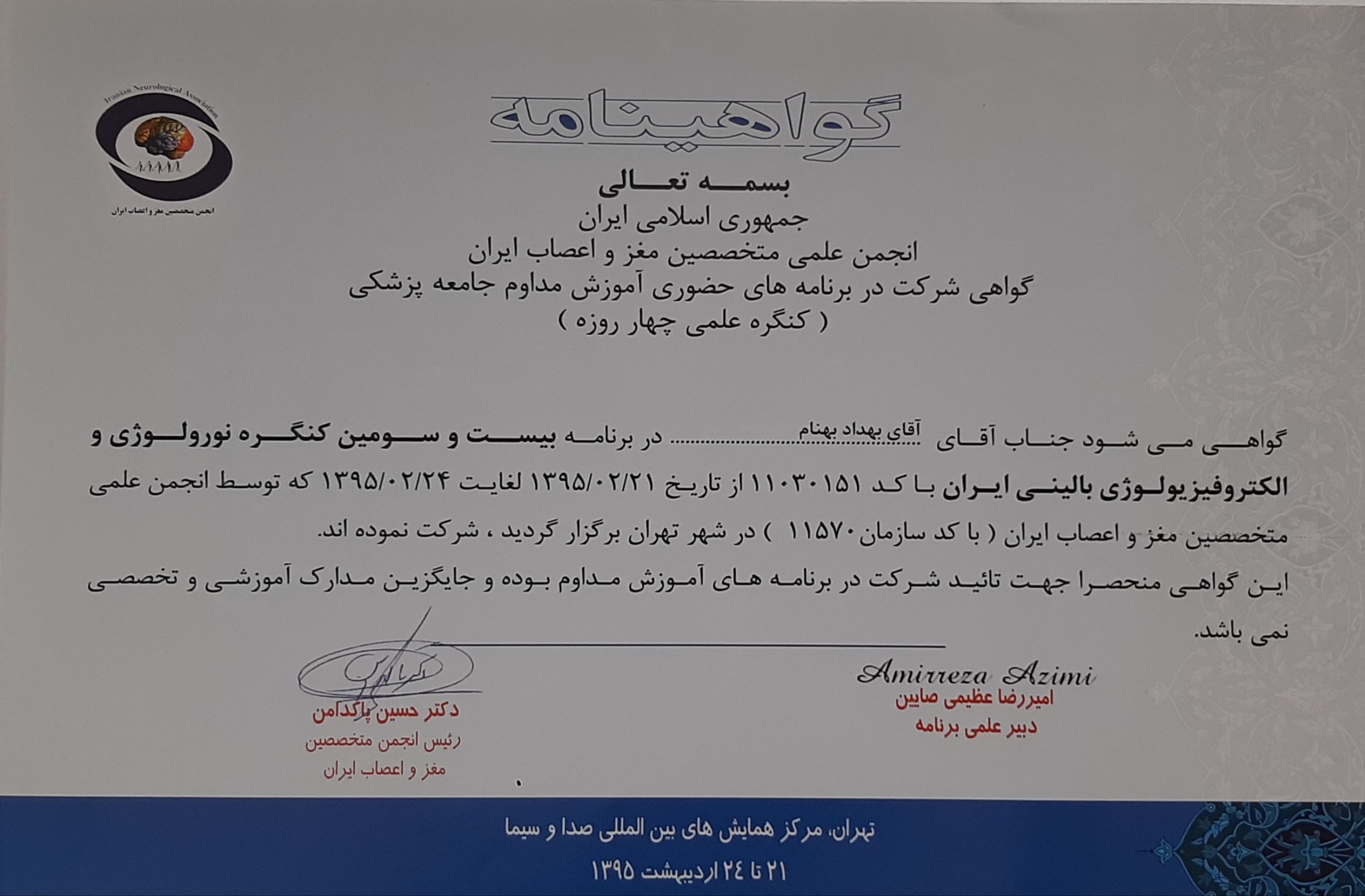 بیست و سومین کنگره نورولوژی و الکتروفیزیولوژی ایران (سال ۱۳۹۵)