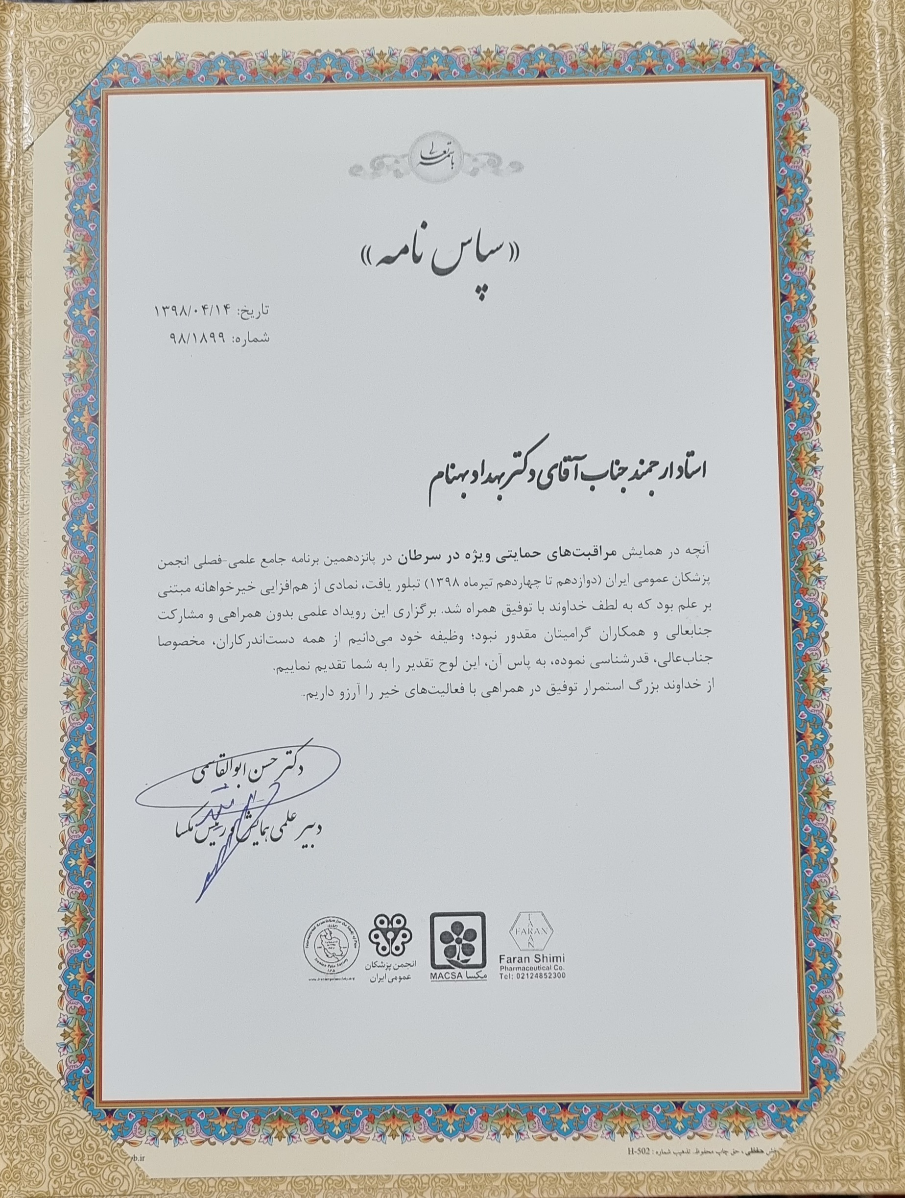 همایش مراقبتهای حمایتی ویژه در سرطان سال ۱۳۹۸