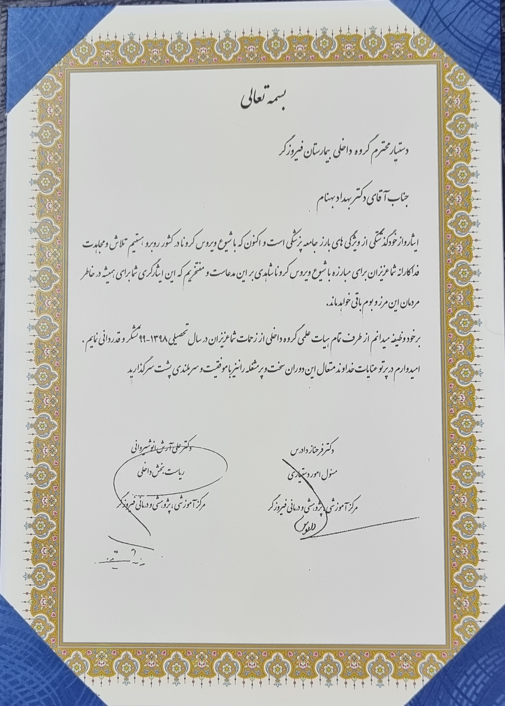 فارغ التحصیل مقطع تخصص بیماریهای داخلی از دانشگاه علوم پزشکی ایران-تهران (سال ۱۴۰۰)