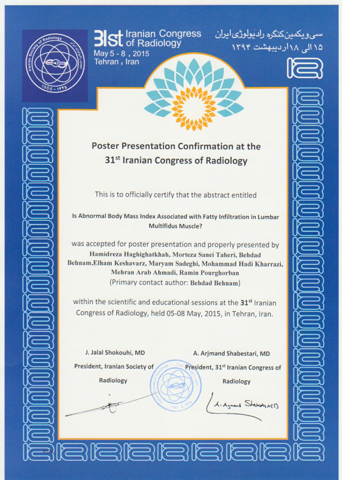 سی و یکمین کنگره رادیولوژی ایران (سال ۱۳۹۴)